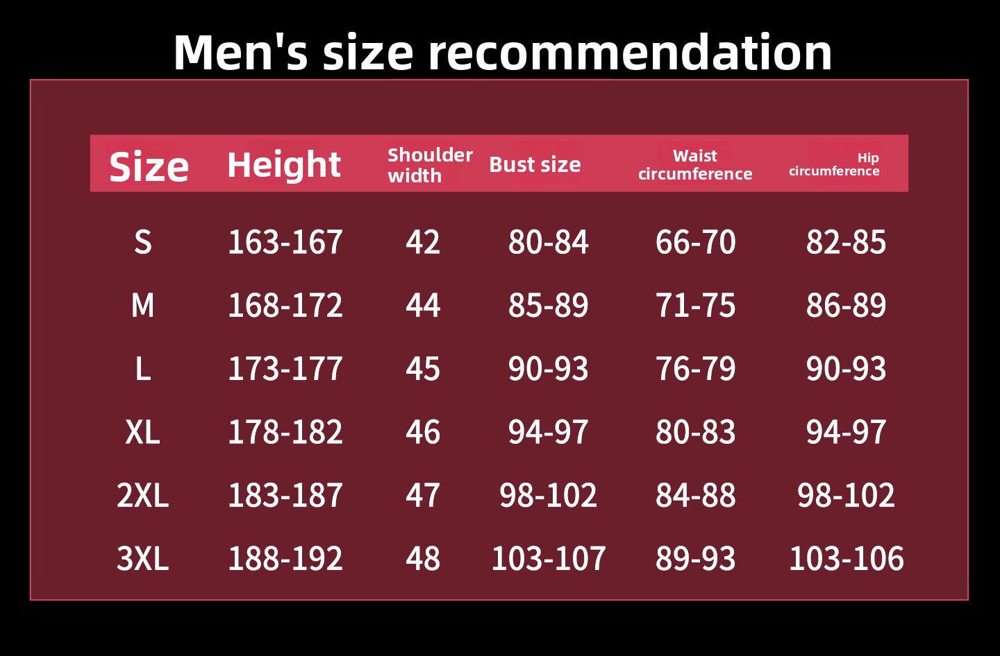 Size: S M L XL XXL XXXL
