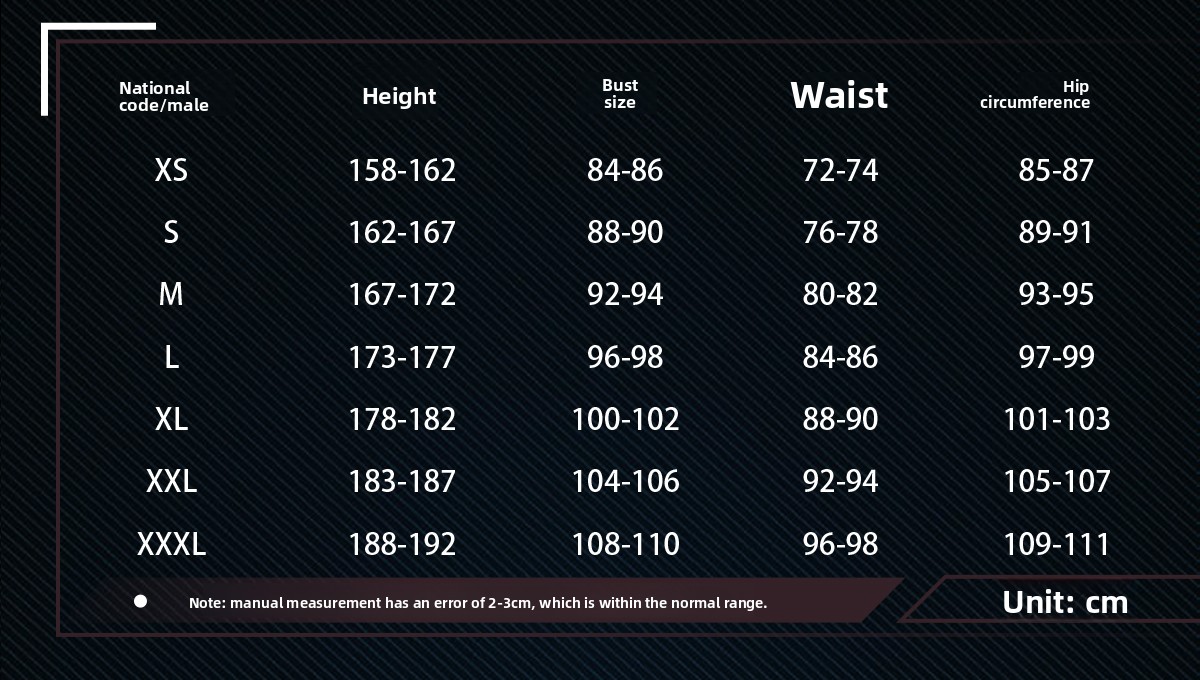 Size: XS S M L XL XXL XXXL (Tailor-made)