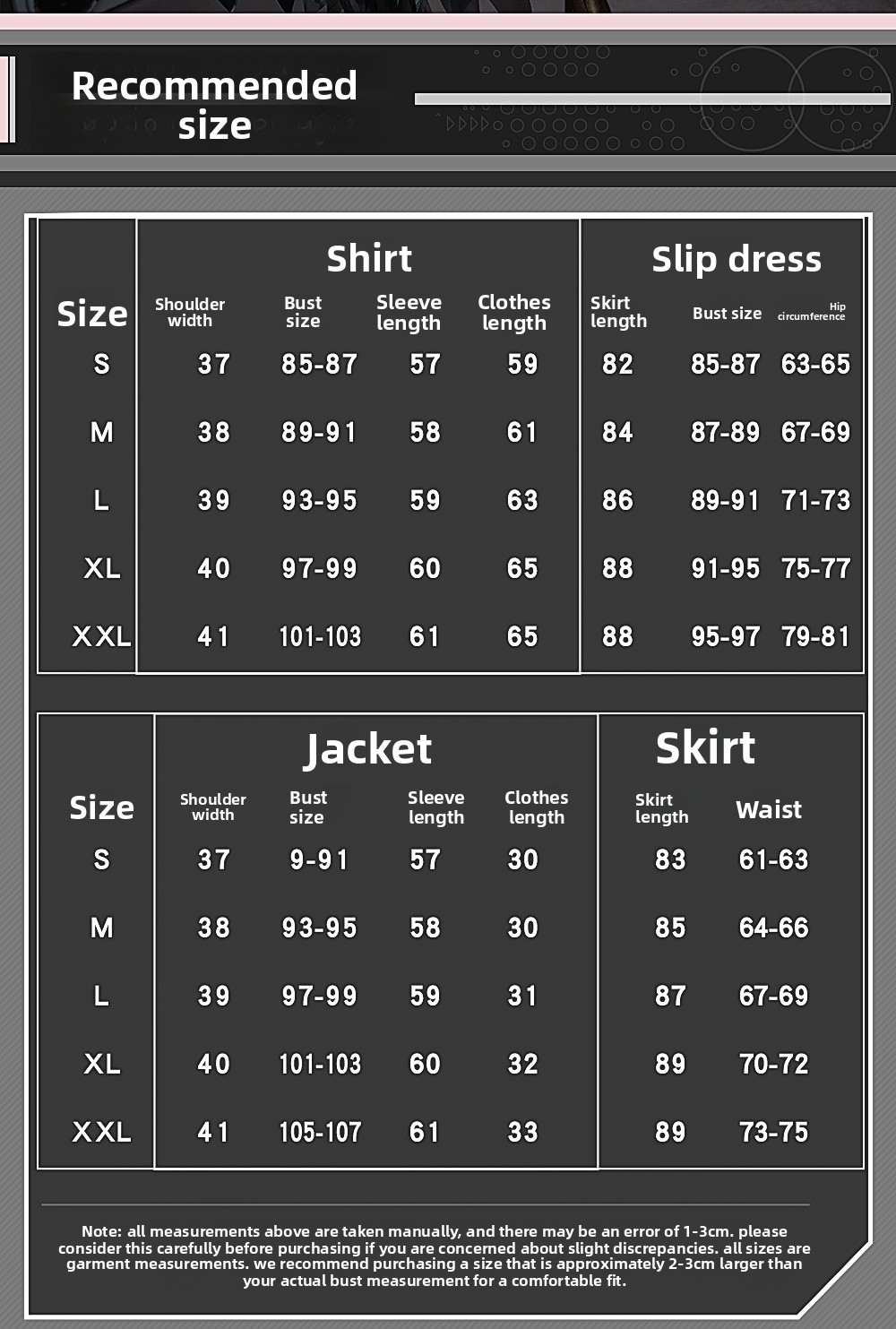 Perfect Fit Guide:Measure height, chest, waist & hip. Use our size chart—don’t rely on daily sizes!(。・ω・。)ノ♡ Need help? Chat with a stylist via "Customer Service"!(^ω^)